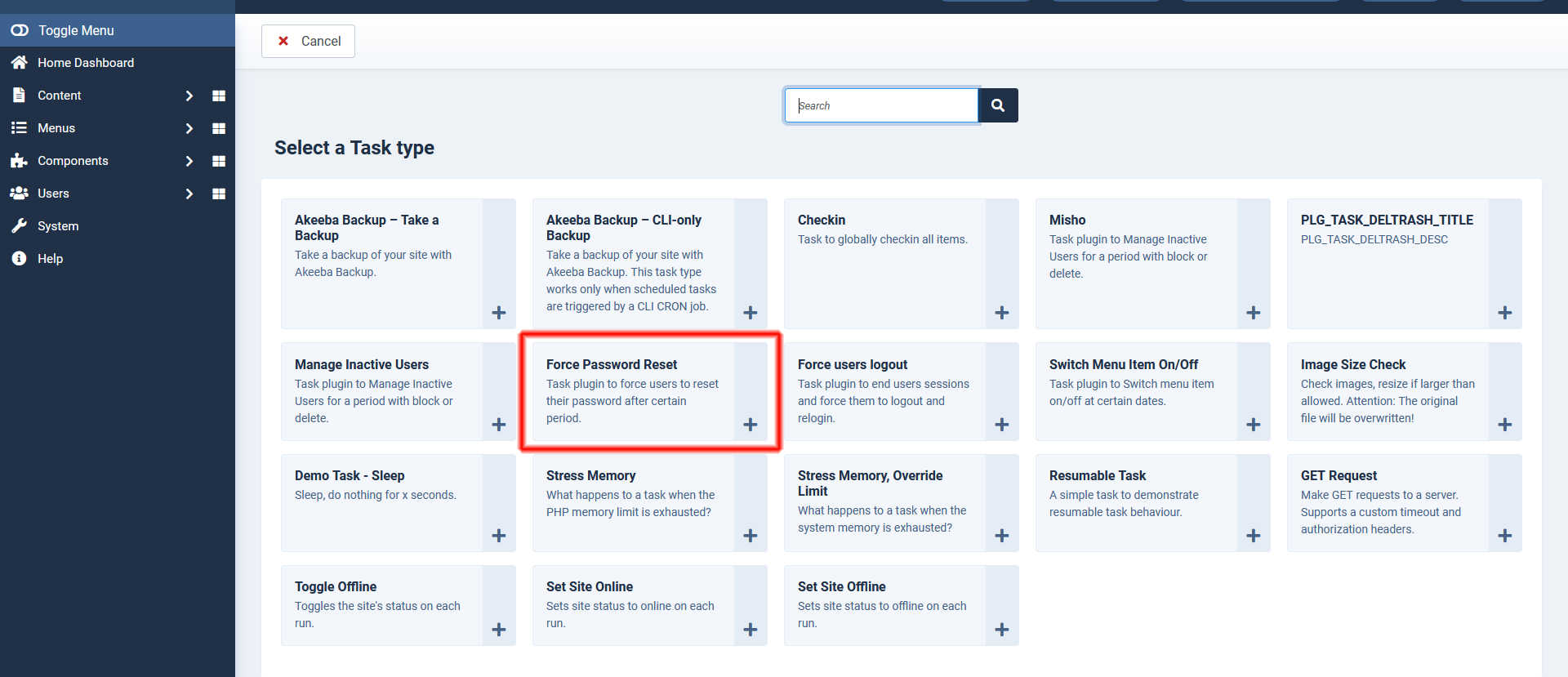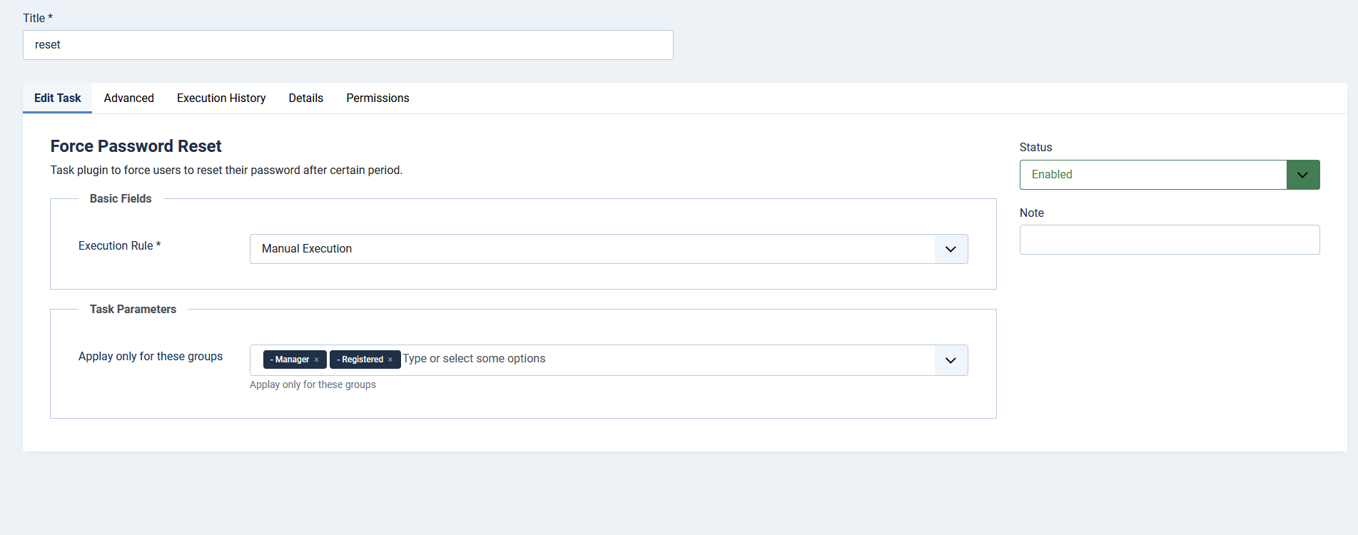 This task plugin will help You to force users of selected groups to reset their password periodically.